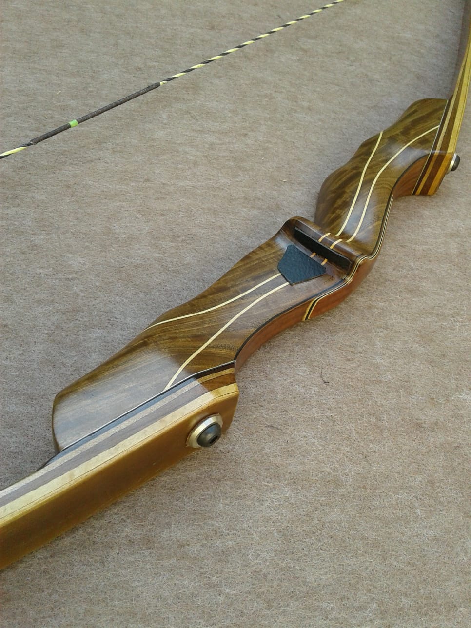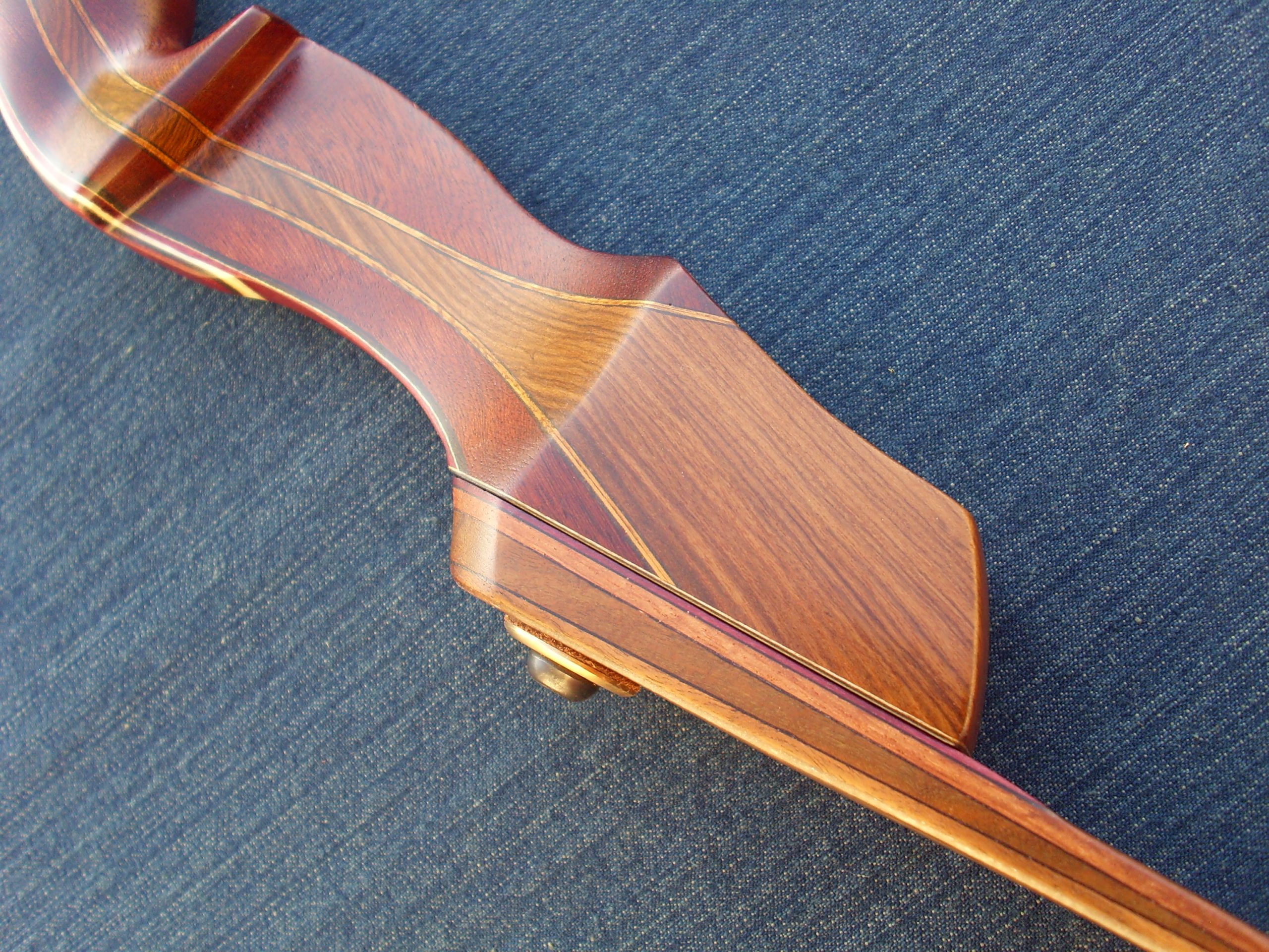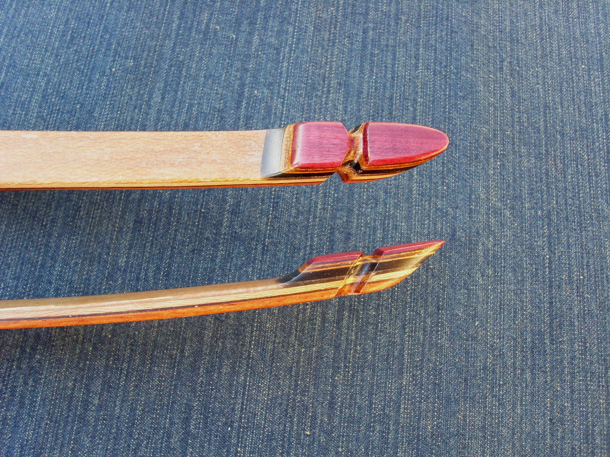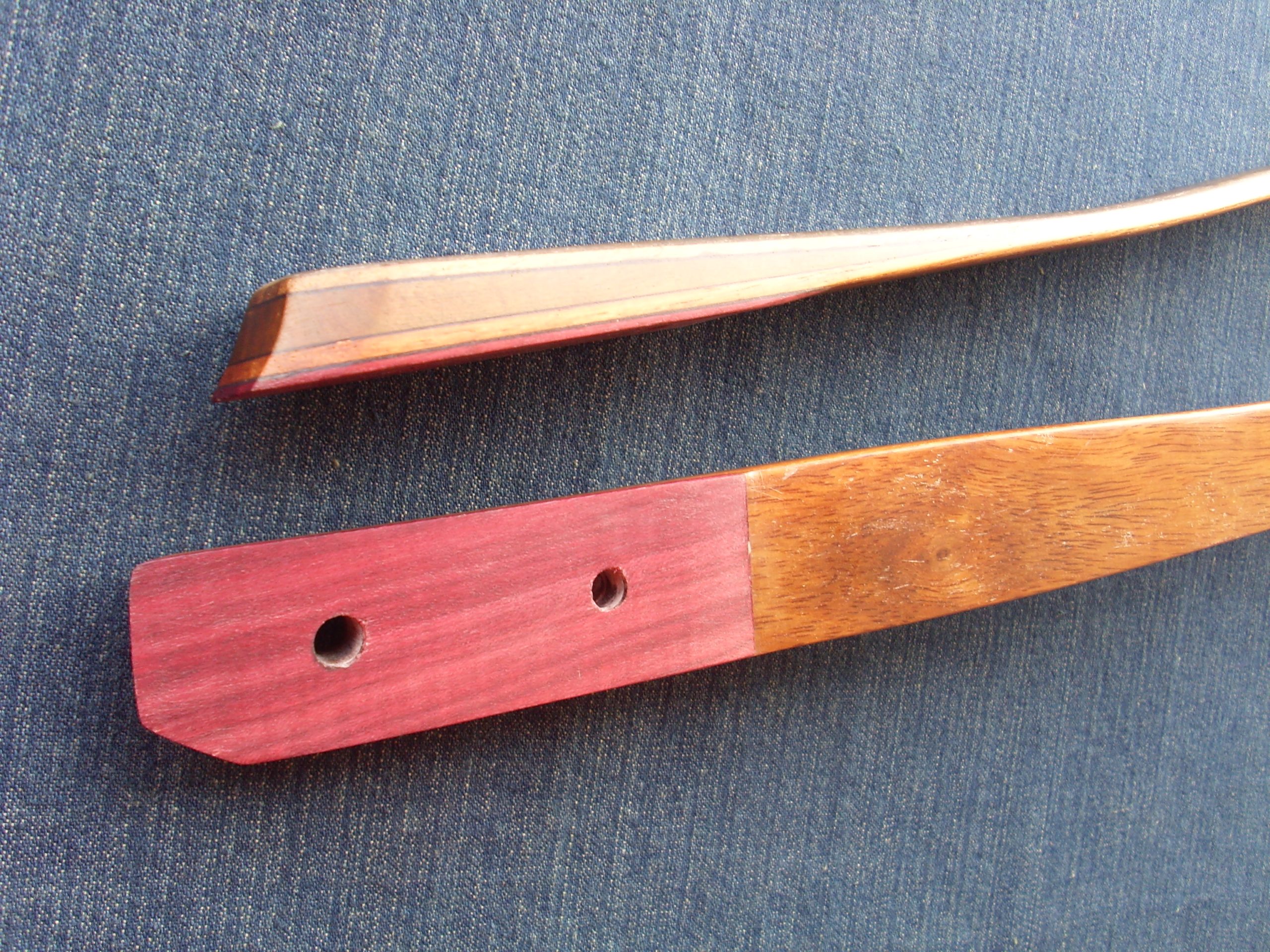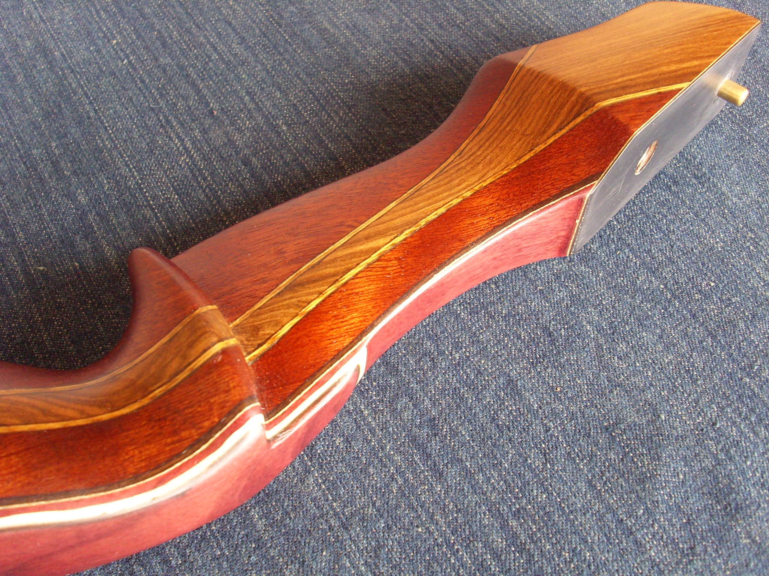 Palas: Se construyen con 3 láminas de madera, uno núcleo cónico principal, y el resto una anterior y posterior, mas la fibra de vidrio dependiendo de la potencia del arco que puede ser transparente o de color. También incorporan cuñas largas que con un desvanecimiento gradual para eliminar áreas de alta tensión y promover la longevidad. Tips bien reforzados en cara interna y externa.