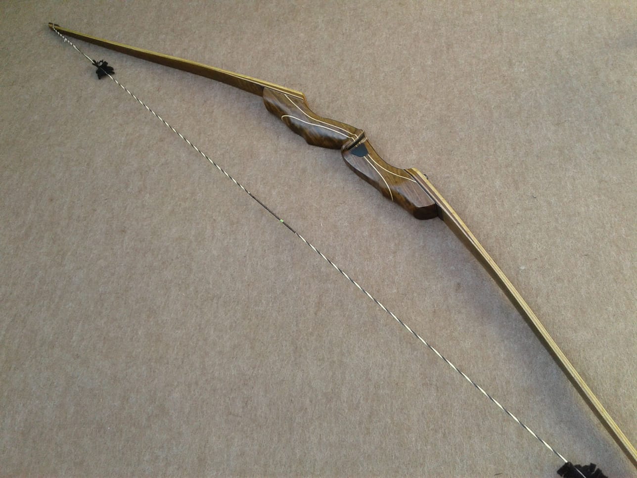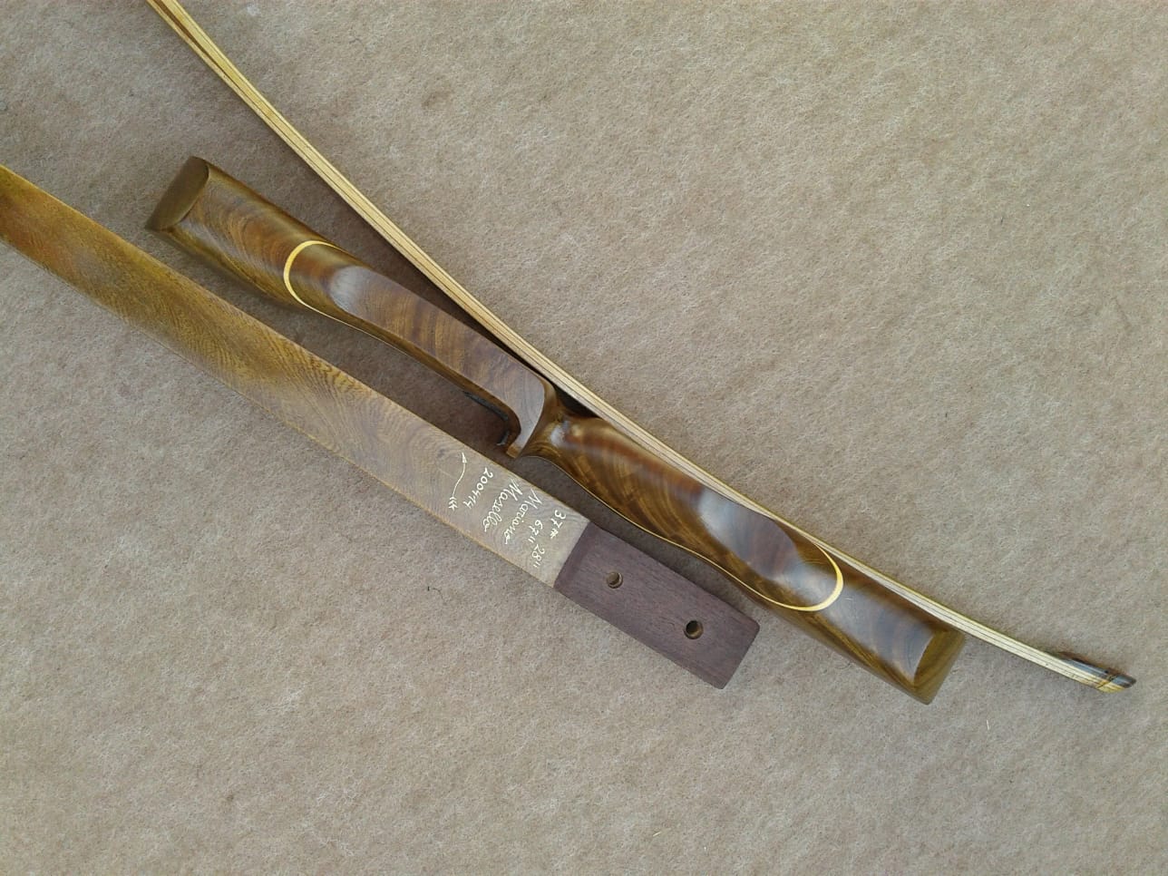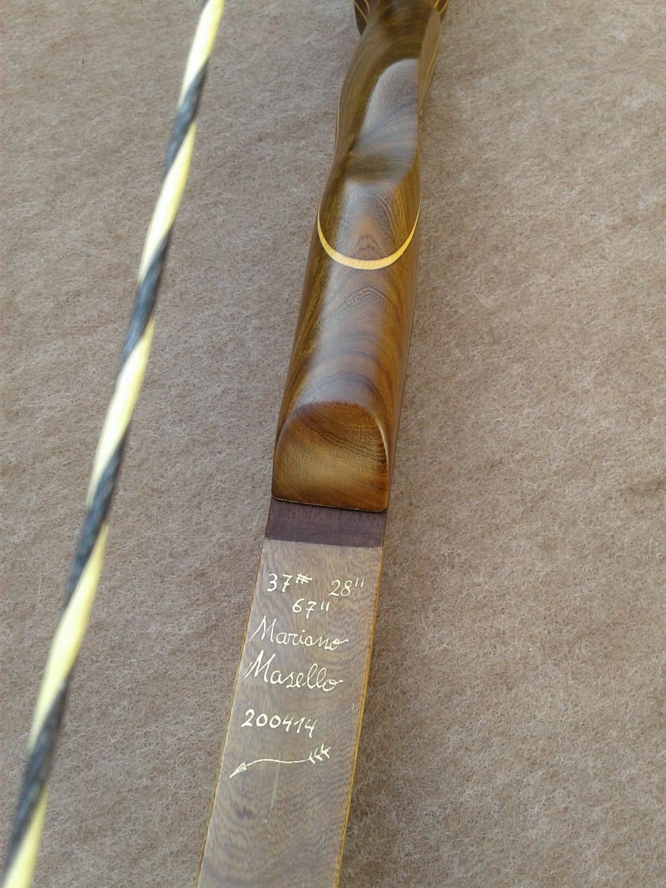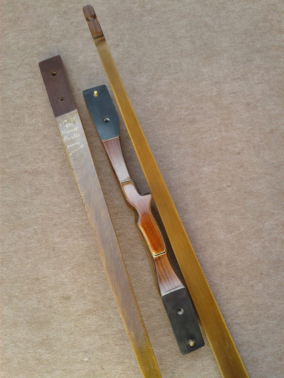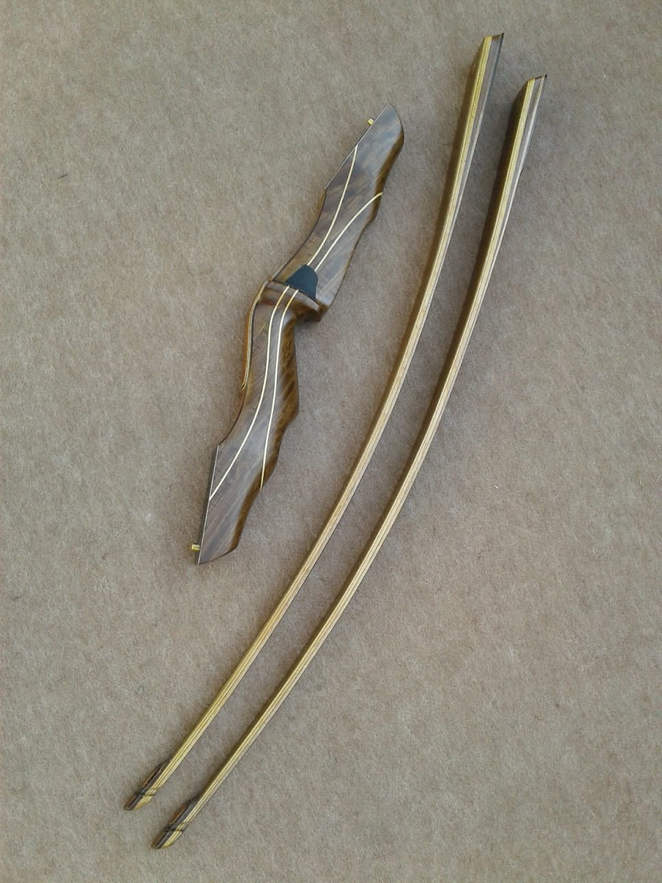 Palas: Se construyen con 3 láminas de madera, uno núcleo cónico principal, y el resto una anterior y posterior, mas la fibra de vidrio dependiendo de la potencia del arco que puede ser transparente o de color. También incorporan cuñas largas que con un desvanecimiento gradual para eliminar áreas de alta tensión y promover la longevidad. Tips bien reforzados en cara interna y externa.